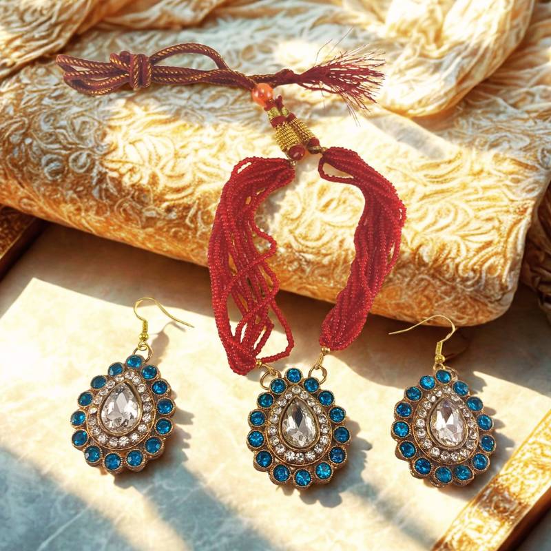 | Product Description | Size Adjustable ,Material Brass ,Pack Of 3 ,Color Firozi ,Work Stone Stud ,Item Pendant Set |