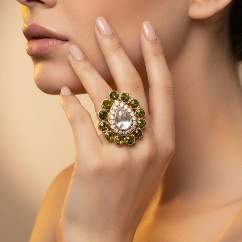 | Product Description | Size Adjustable ,Material Brass ,Pack Of 1 ,Color Mehendi ,Work Stone Stud ,Item Ring |