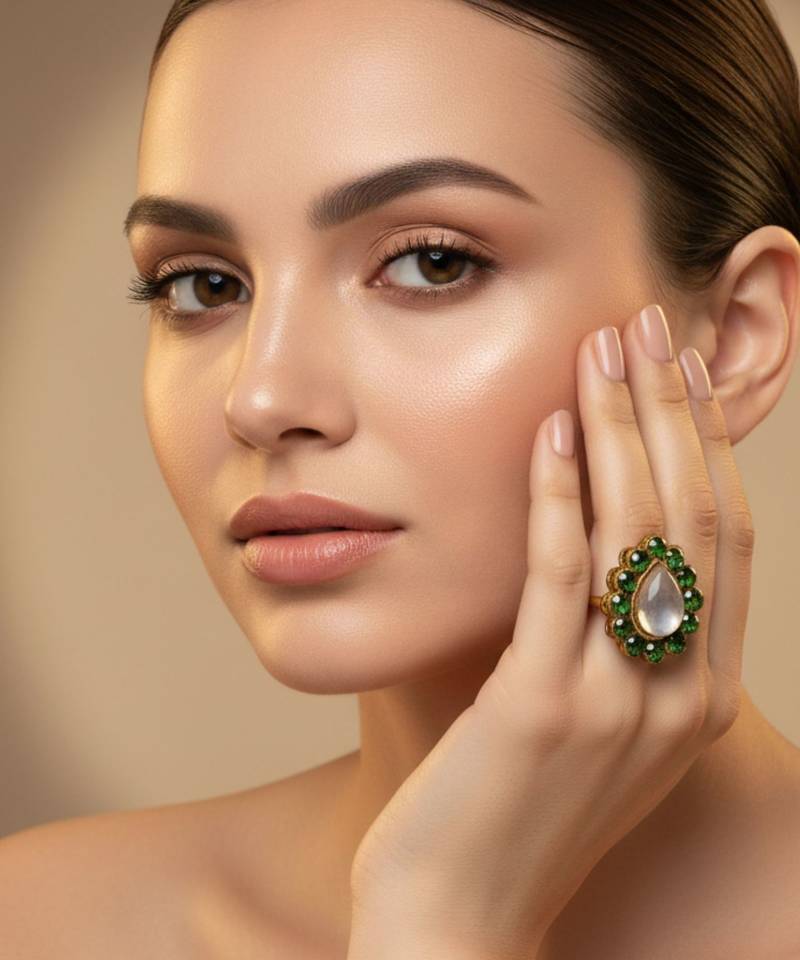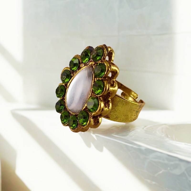 | Product Name | Mehendi Stone Stud Brass Ring / Premium Gold Plated Wedding Ring For Women | |