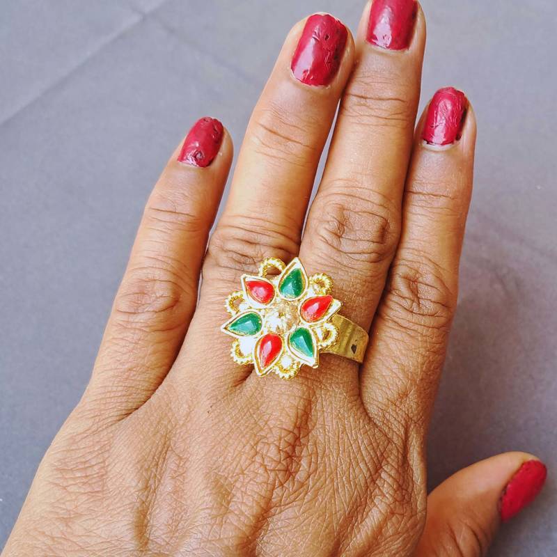 | Product Description | Size Adjustable ,Material Brass ,Pack Of 1 ,Color Multi ,Work Stone Stud ,Item Ring |