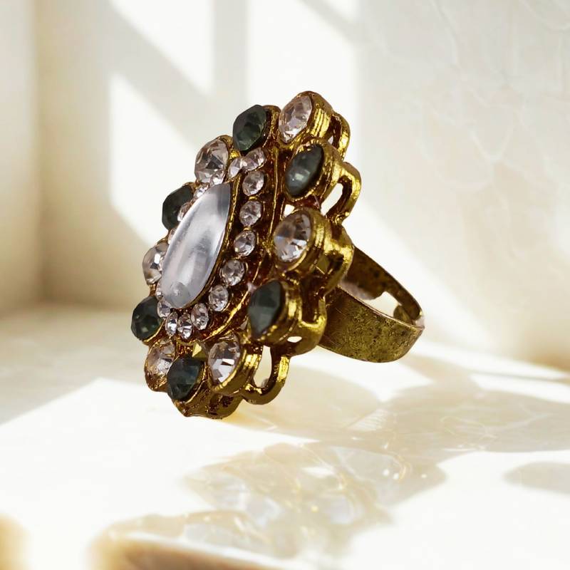 Multi stone stud brass ring :: adjustable ring with stones:: sku-rin271 sku-rin271