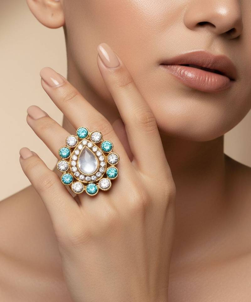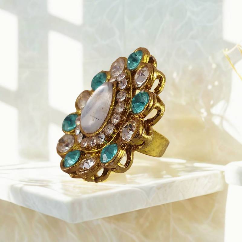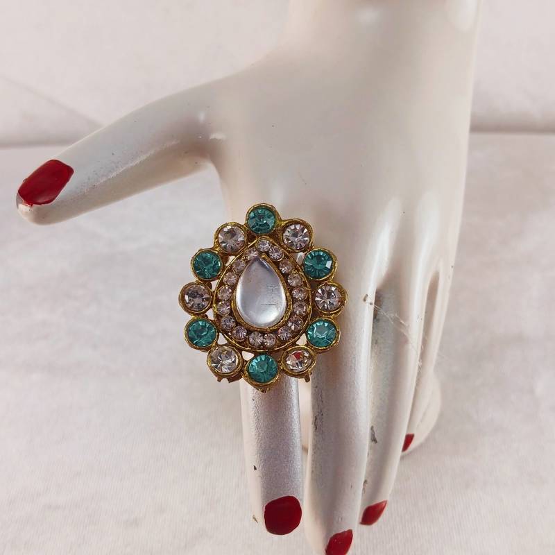 Size Adjustable ,Material Brass ,Pack Of 1 ,Color Multi ,Work Stone Stud ,Item Ring