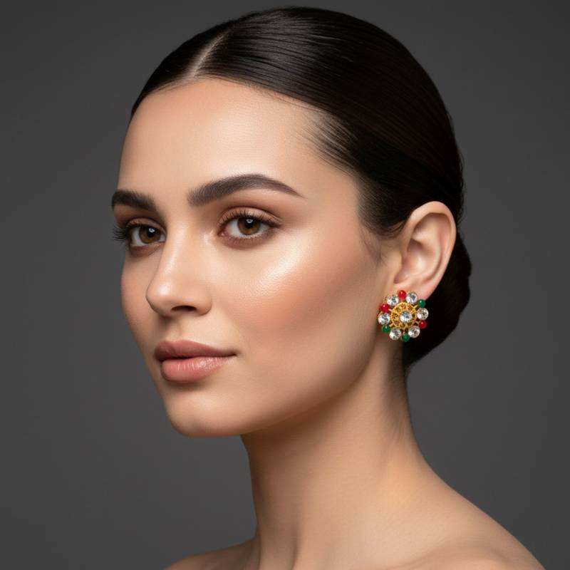 | Product Name | Multi Stone Stud Brass Tops/Stone Studded Earrings / Women – Party Wear/ Festive Jewelry/Sku Ear751 | |