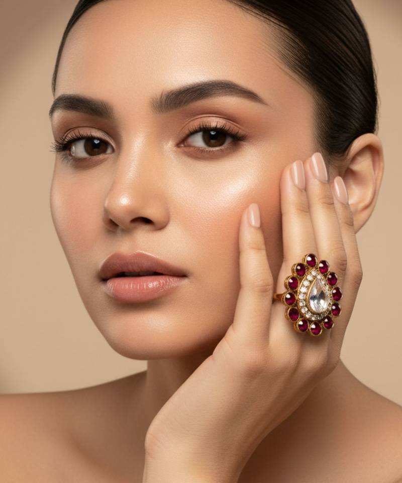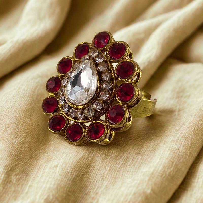 | Product Description | Size Adjustable ,Material Brass ,Pack Of 1 ,Color Rani ,Work Stone Stud ,Item Ring |
