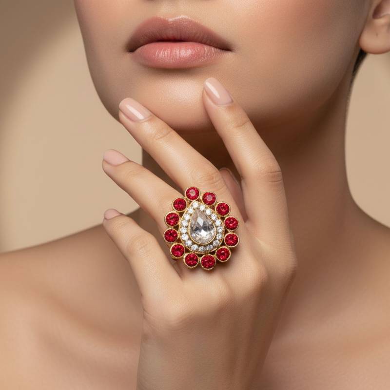 | Product Description | Size Adjustable ,Material Brass ,Pack Of 1 ,Color Red ,Work Stone Stud ,Item Ring |