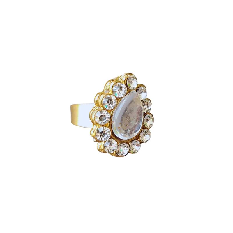 White stone stud brass ring :: premium gold plated wedding ring for women