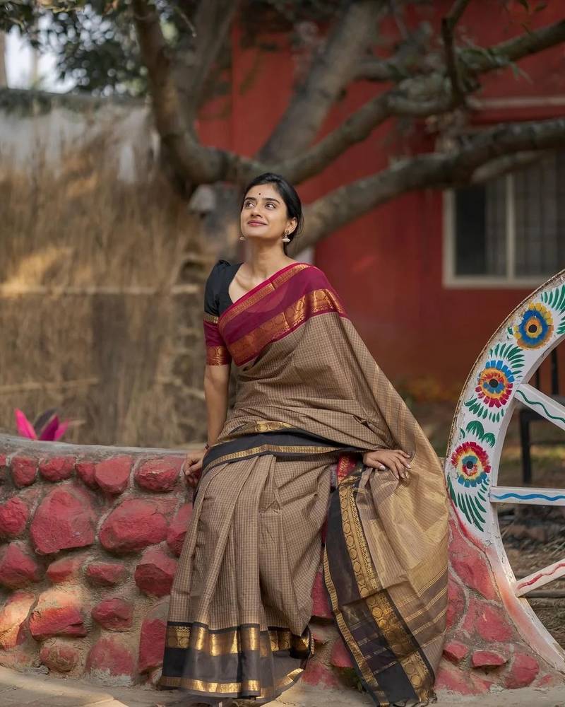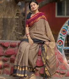 Beige chettinad saree cotton silk ganga jamuna saree with blouse
