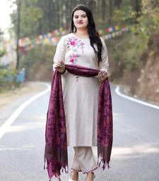 | Product Name | Beige Cotton Kurta Set With Embroidery & Contrast Khadi Silk Dupatta | |