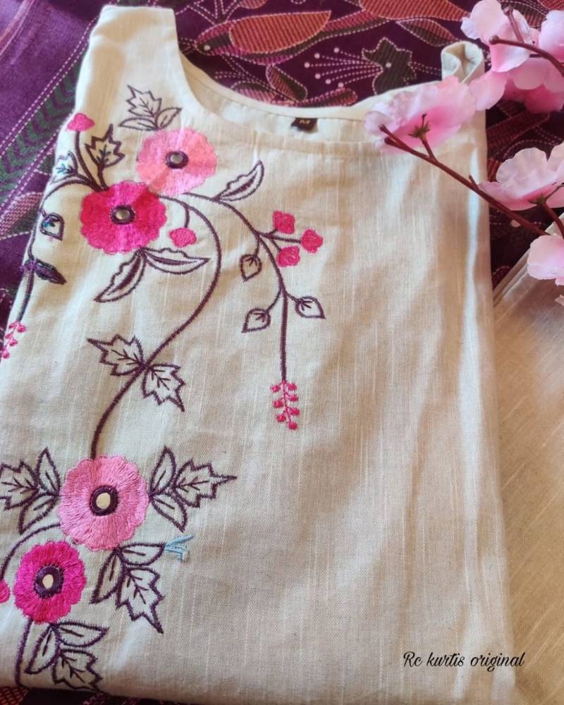 | Product Description | Graceful And Elegant, This Beige Cotton Kurta Set Features Delicate Floral Embroidery On The Neckline, Paired With Straight Pants And A Rich Maroon Printed Dupatta. Perfect For Festive And Casual Occasions, It Blends Comfort With A Refined Ethnic Look. Fabric: Cotton
