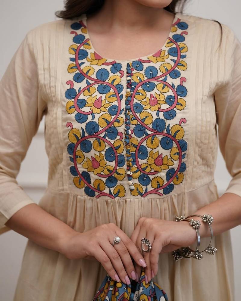 | Product Description | Graceful And Elegant, This Beige Anarkali Kurta Set Features A Flowy Silhouette Enhanced With Vibrant Multicolor Embroidery On The Yoke. The Soft Fabric Ensures Comfort While The Gathered Flare Adds Volume And Movement. Paired With A Contrasting Printed Dupatta, This Set Creates A Perfect Balance Of Subtle Base Tones And Rich Traditional Patterns, Making It Ideal For Festive And Casual Ethnic Wear. |