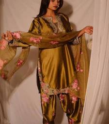 Gold embroidery japan satin fully stitched farshi salwar suit set