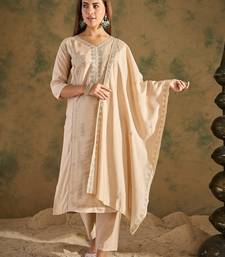 Beige women kurta pant dupatta set stitched