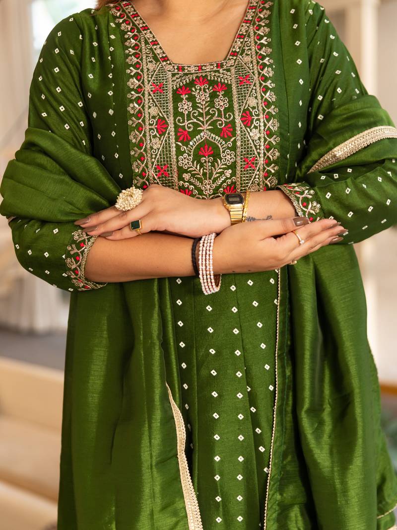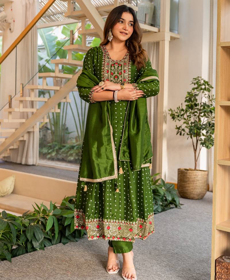Green women kurta pant dupatta set stitched