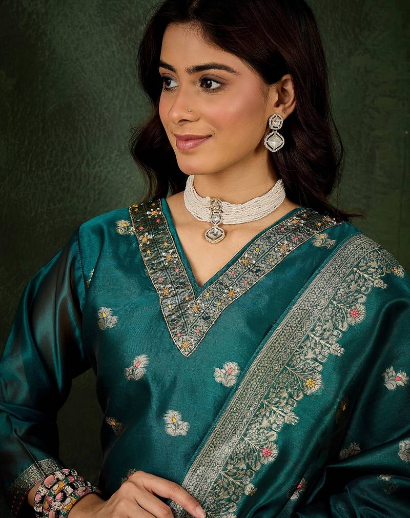 | • | Kameez | : | Color- Green / Fabric- Silk Blend |