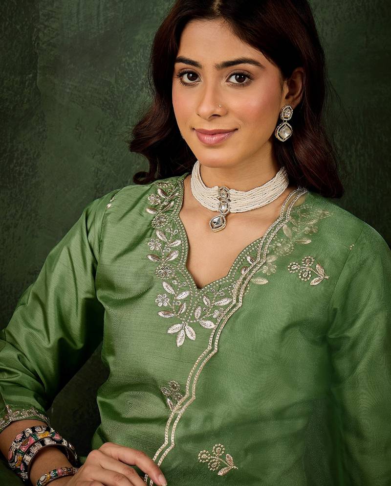 | • | Kameez | : | Color- Green / Fabric- Silk Blend |