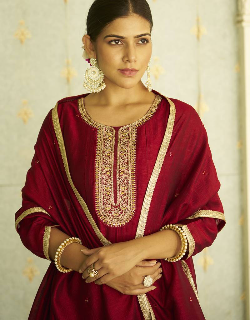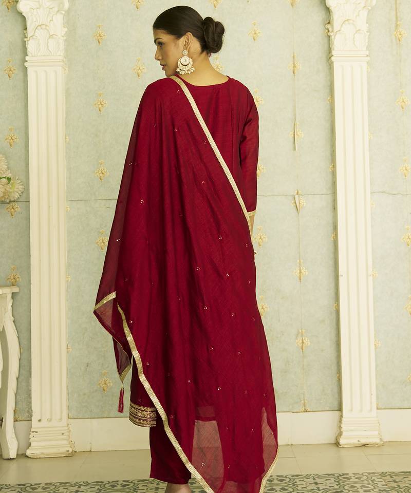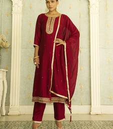 Maroon women kurta pant dupatta set stitched