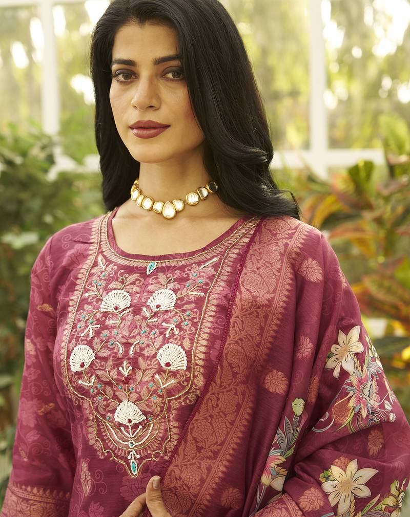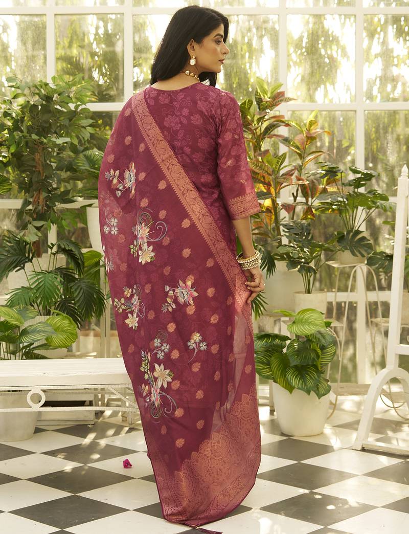 Maroon women kurta pant dupatta set stitched