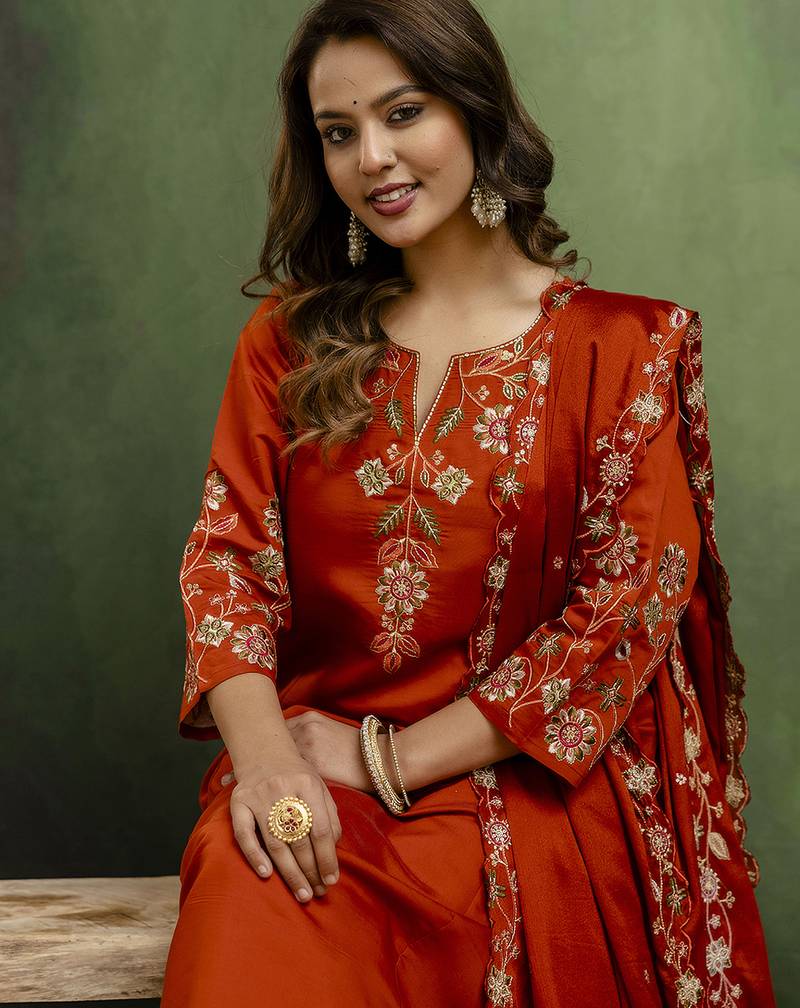 | • | Kameez | : | Color- Orange / Fabric- Silk Blend |