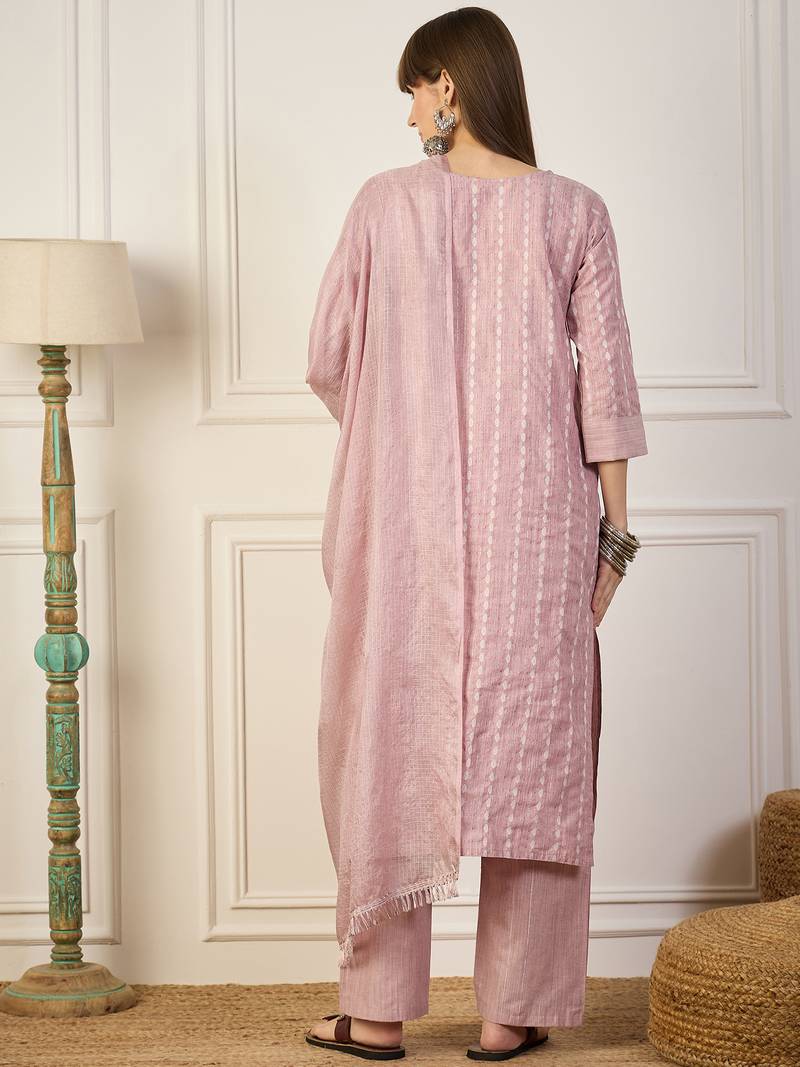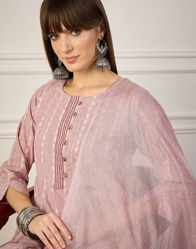 Pink women kurta pant dupatta set stitched