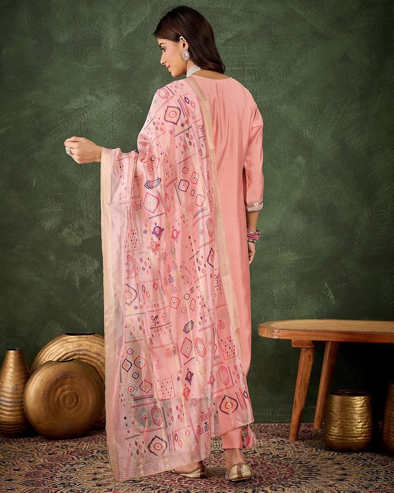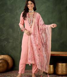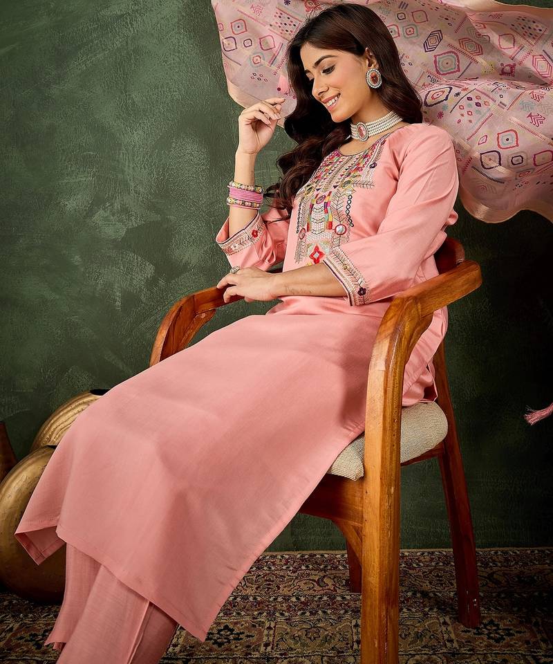 Pink women kurta pant dupatta set stitched