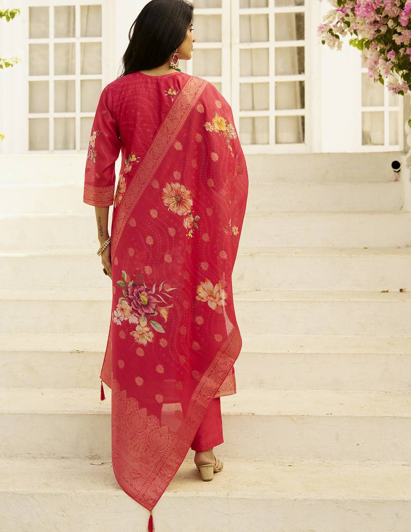 Pink women kurta pant dupatta set stitched