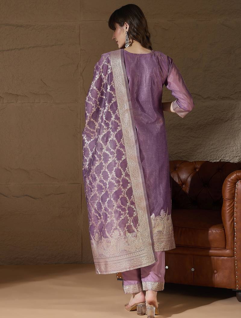 Purple women kurta pant dupatta set stitched