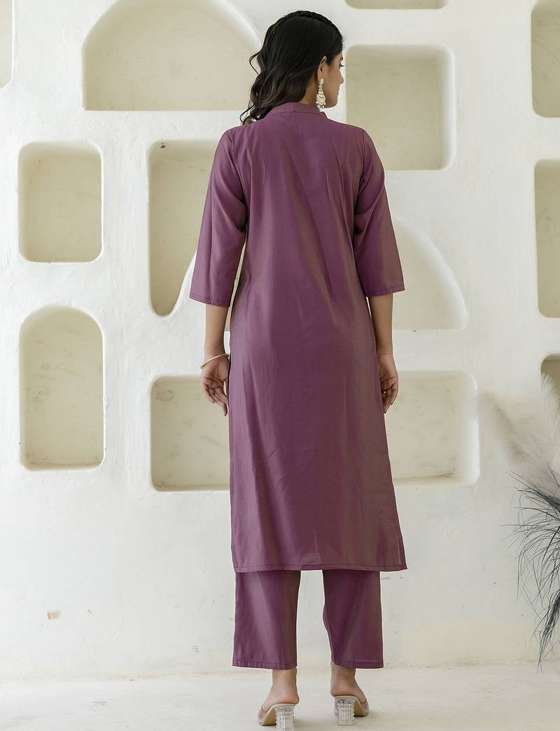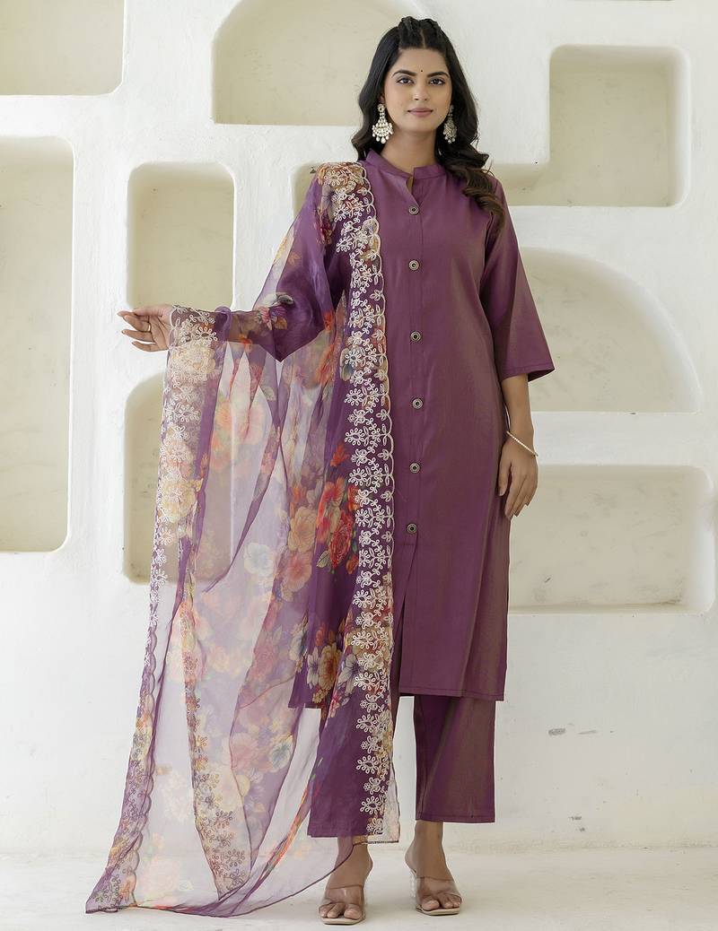 Purple women kurta pant dupatta set stitched