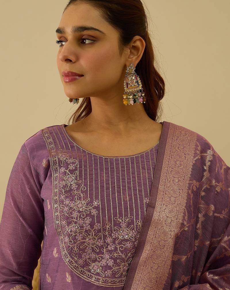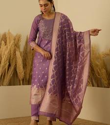 Purple women kurta pant dupatta set stitched