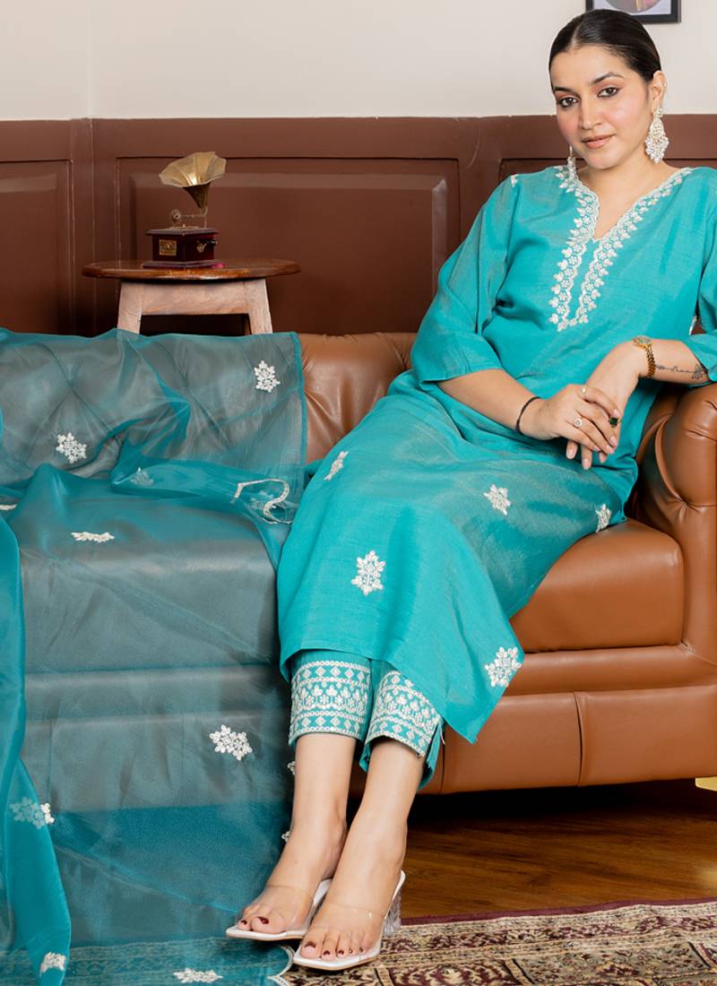 | • | Dupatta | : | Color- Teal / Fabric- Faux Viscose Rayon |