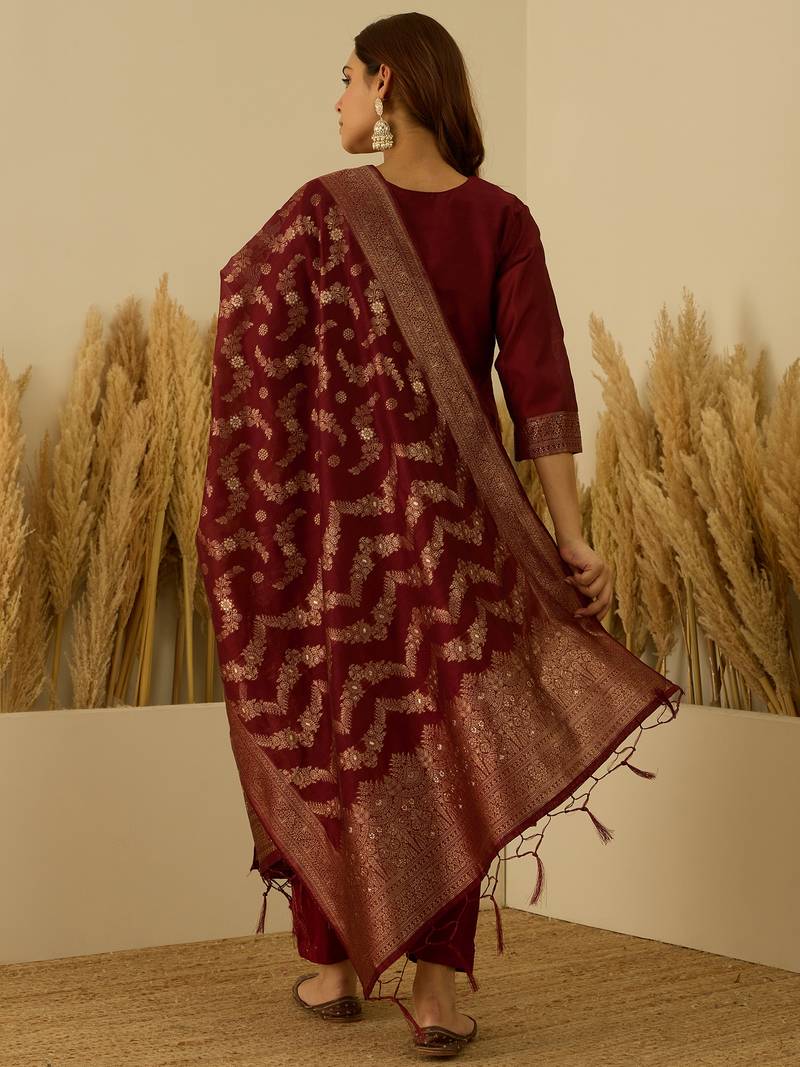 Dupatta : Color- Red / Fabric- Faux Chiffon