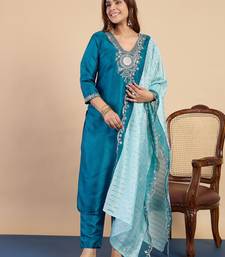 Teal women kurta pant dupatta set stitched