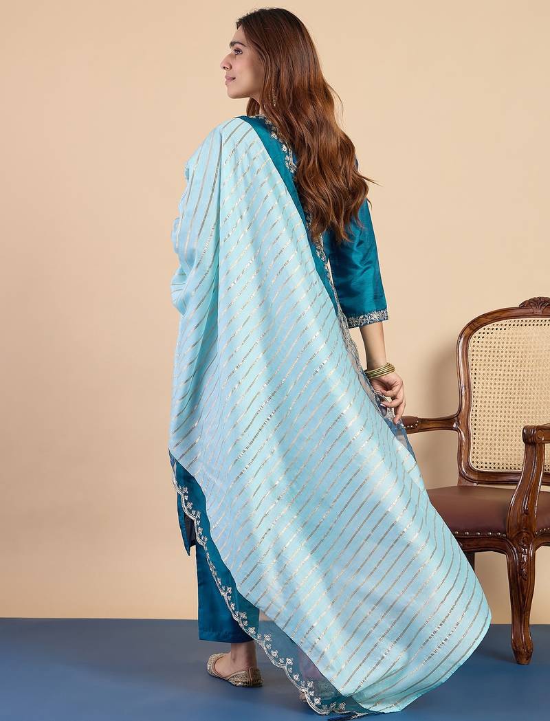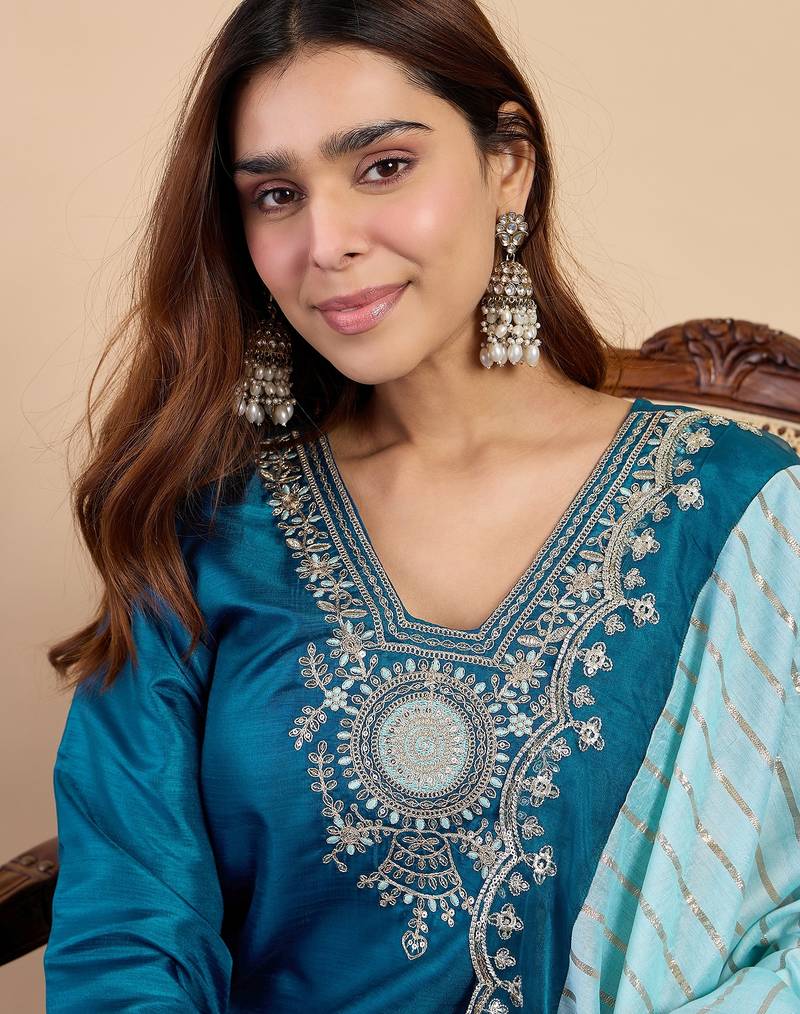 Teal women kurta pant dupatta set