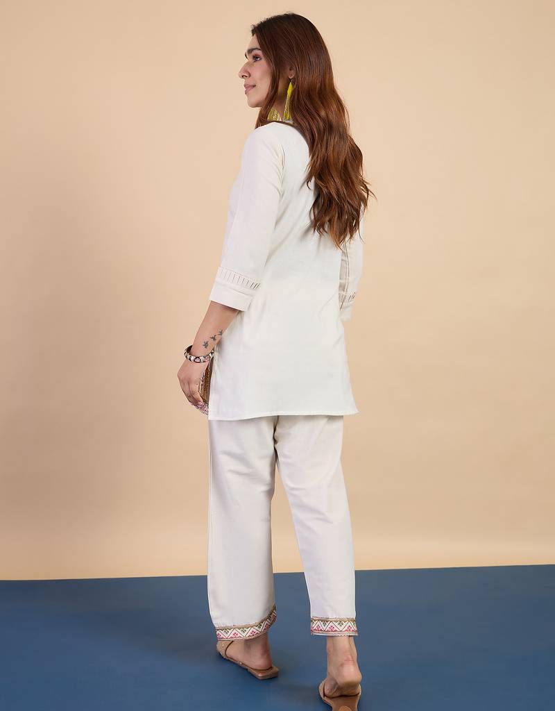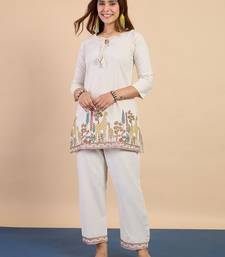 White women khadi cotton kurta pant set stitched