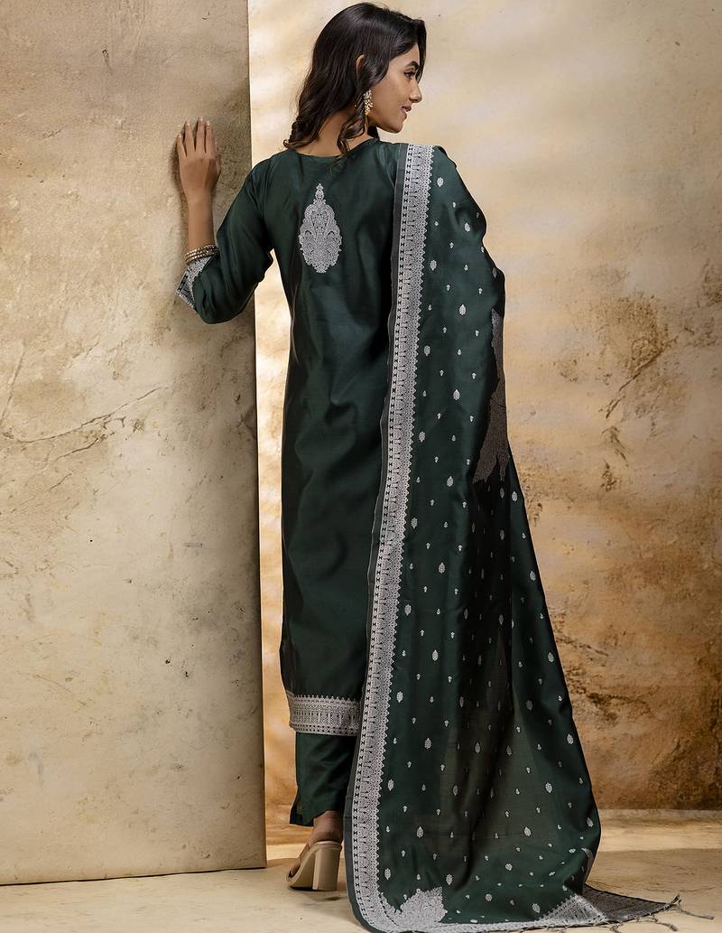 | • | Dupatta | : | Color- Green / Fabric- Chanderi Silk |