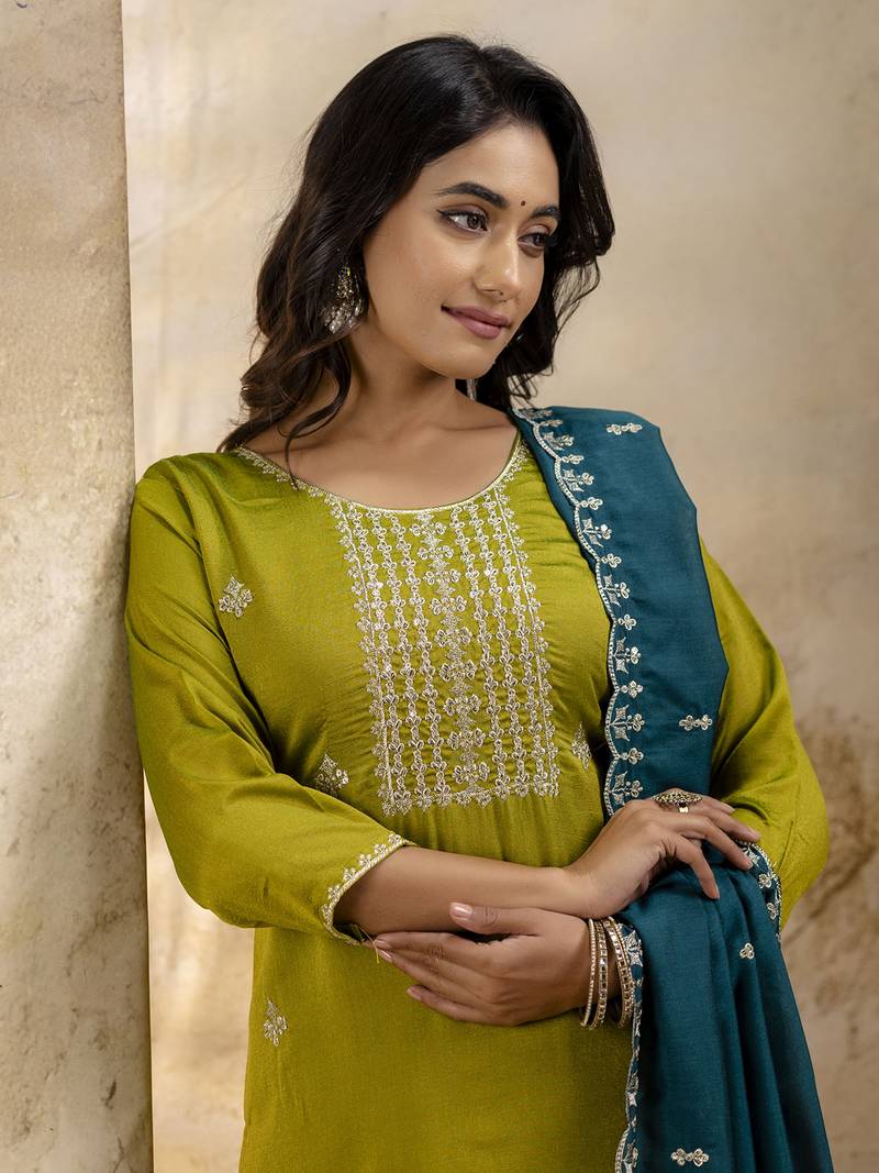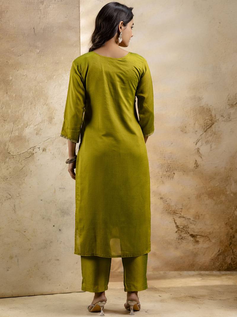 | Product Name | Olive Silk Blend Embroidered Kurta Pant Set | |