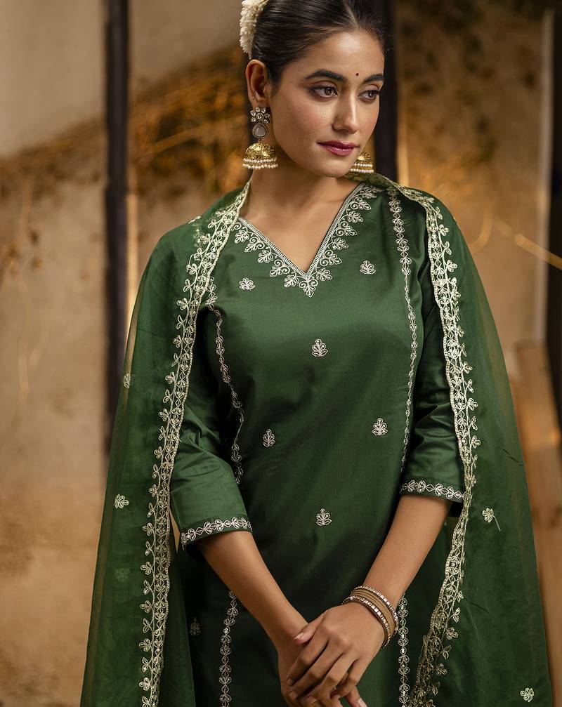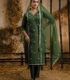 Women's embroidered silk blend kurta pant sets with dupatta stitched