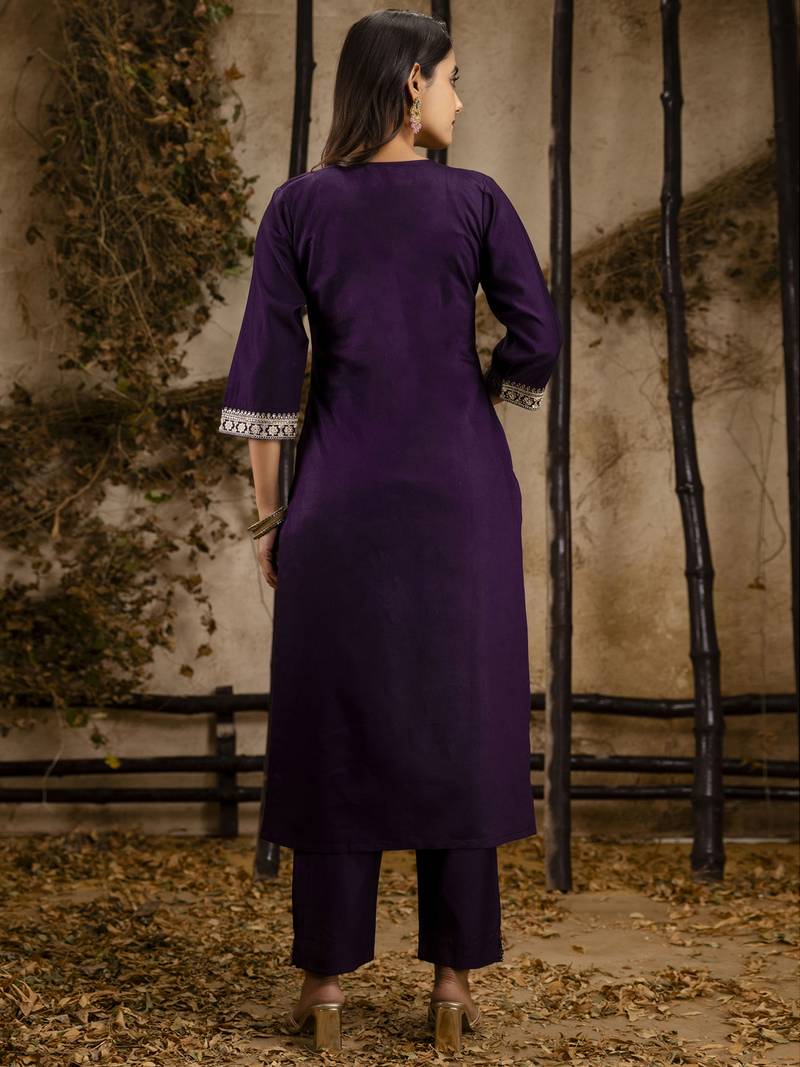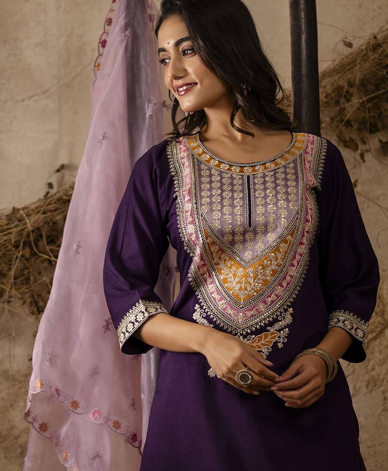 | Product Name | Purple Embroidered Viscose Rayon Straight Kurta Set With Dupatta | |
