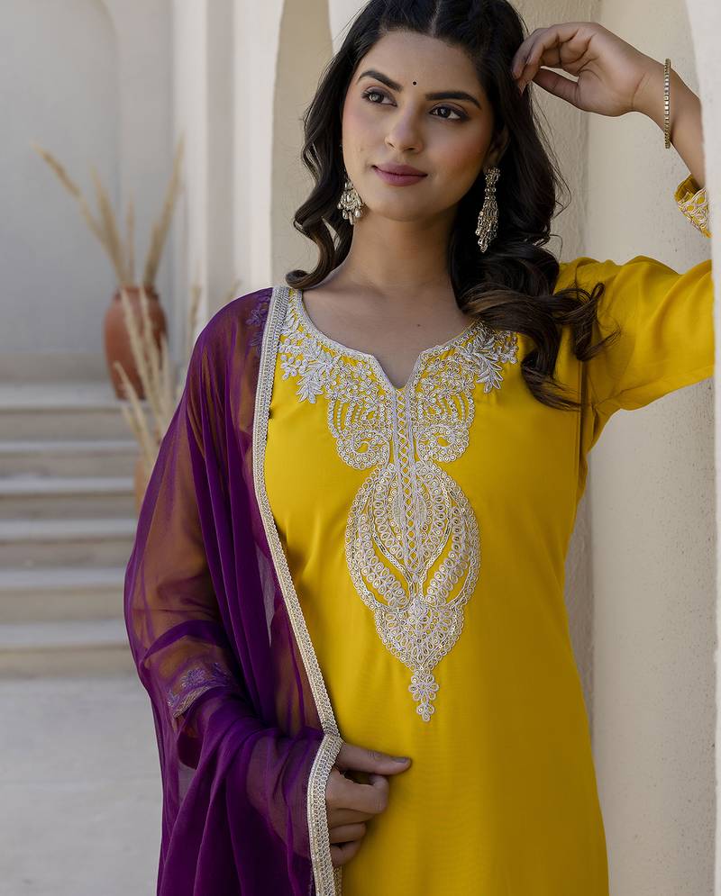 Product Name Yellow Women Kurta Pant Dupatta Set