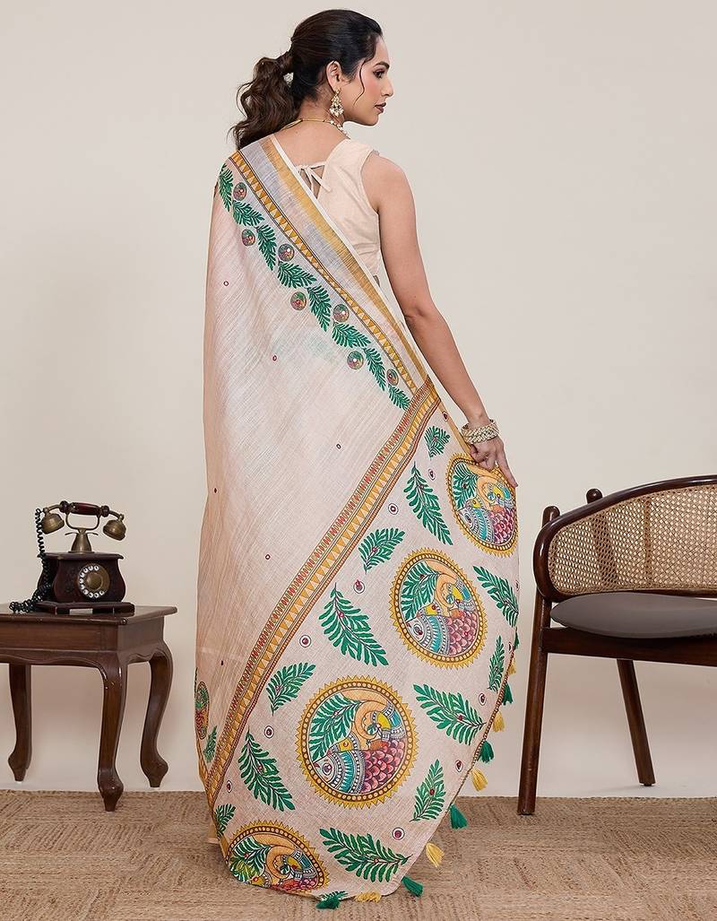 | Product Name | Beige Linen Printed Saree With Blouse | |