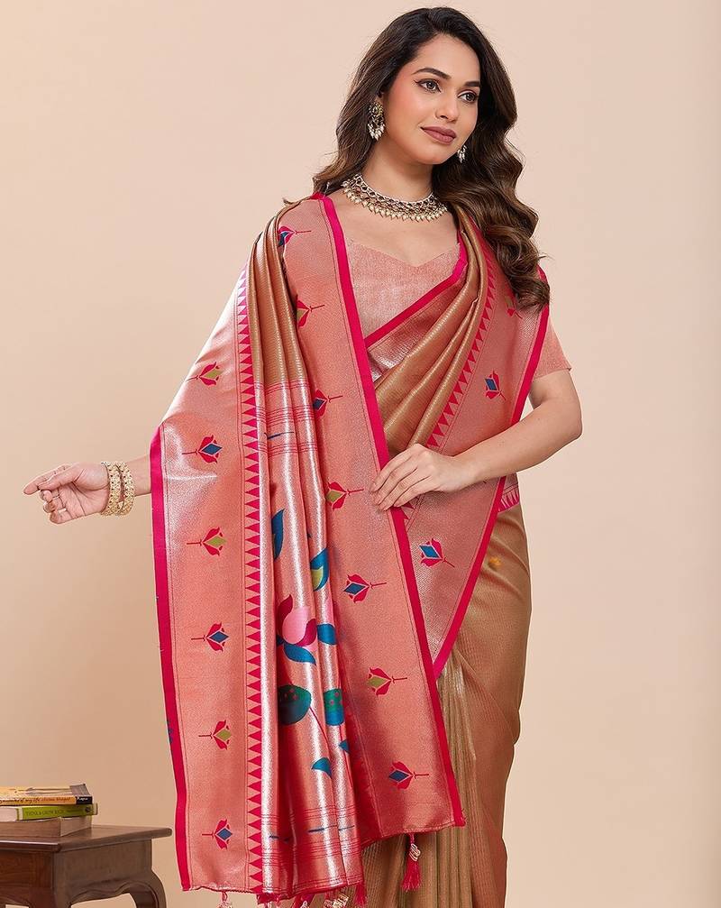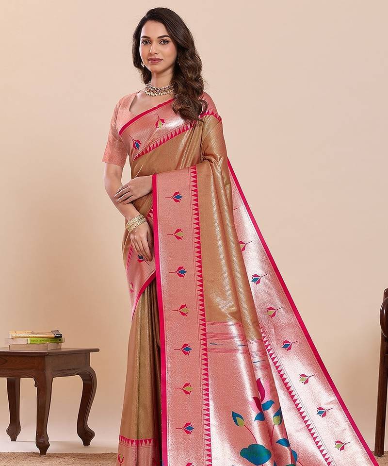 | Product Name | Beige Silk Blend Printed Saree With Blouse | |