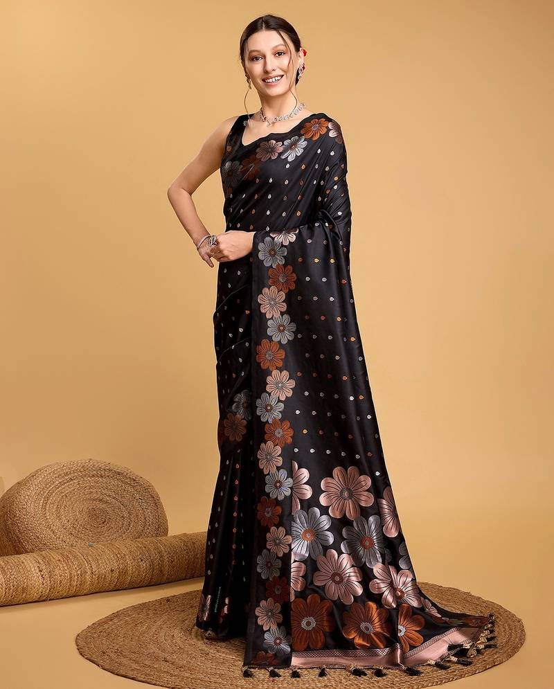 | Product Name | Black Silk Blend Printed Saree With Blouse | |