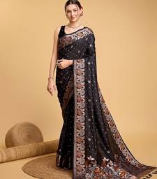 Black silk blend printed saree with blouse