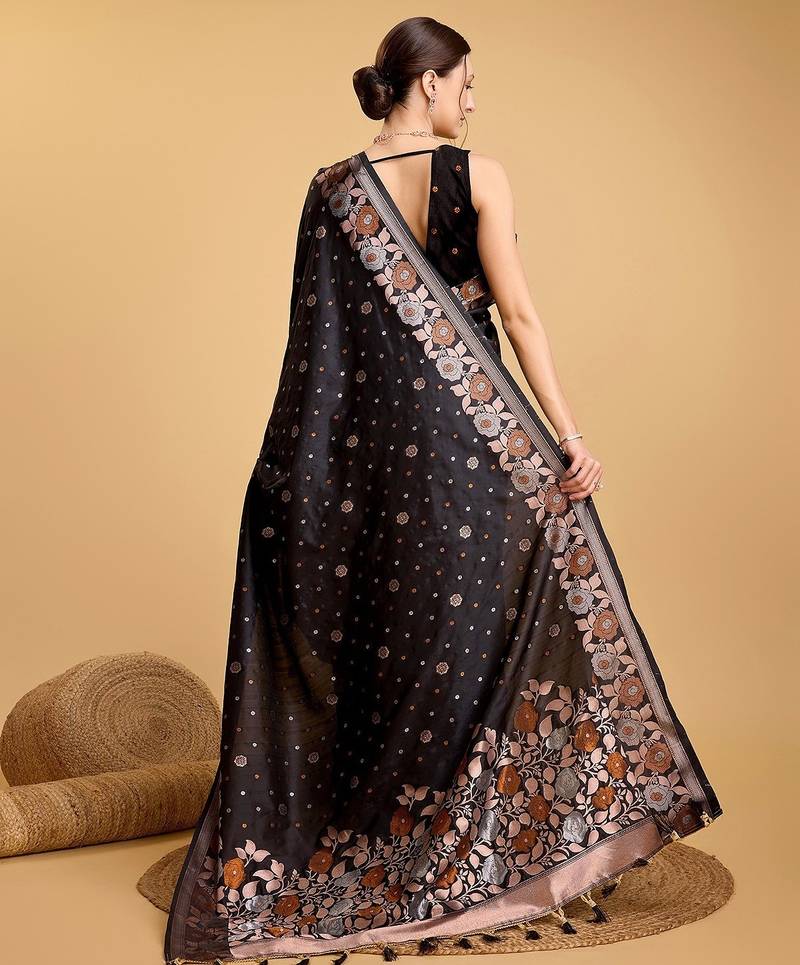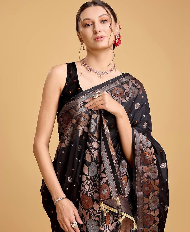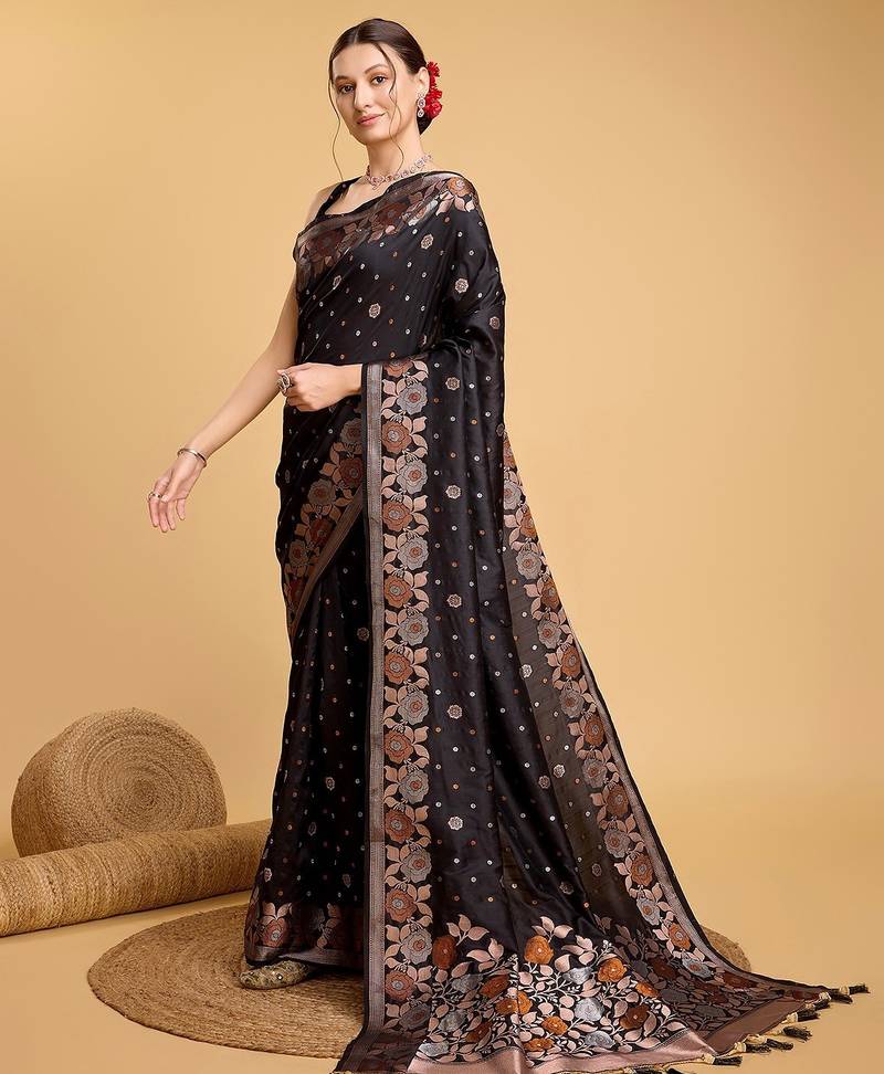 | Product Name | Black Silk Blend Printed Saree With Blouse | |