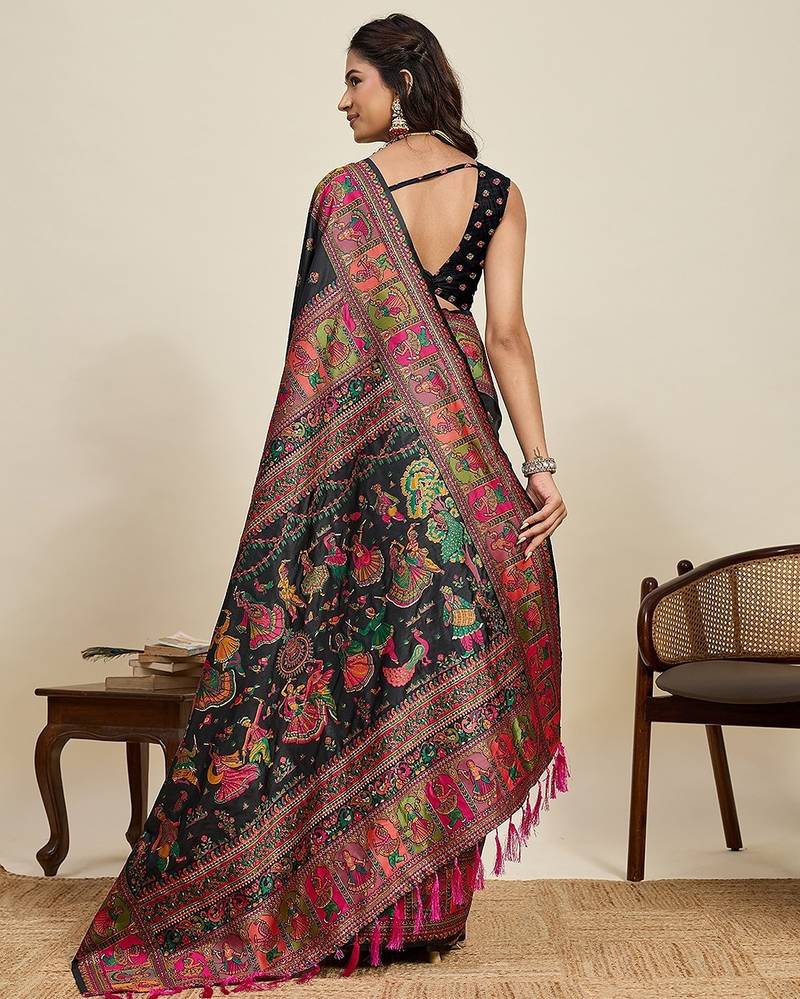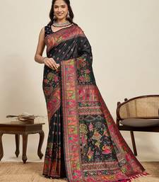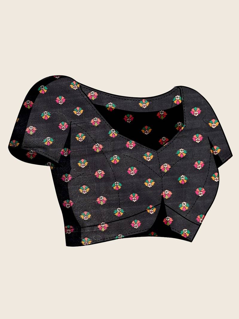 Black silk blend blend printed saree with blouse