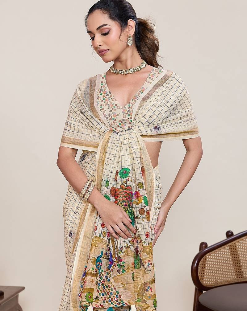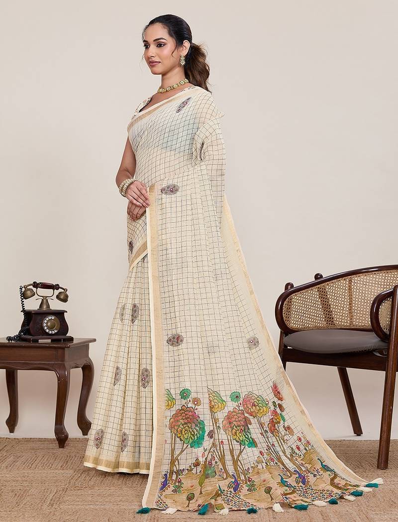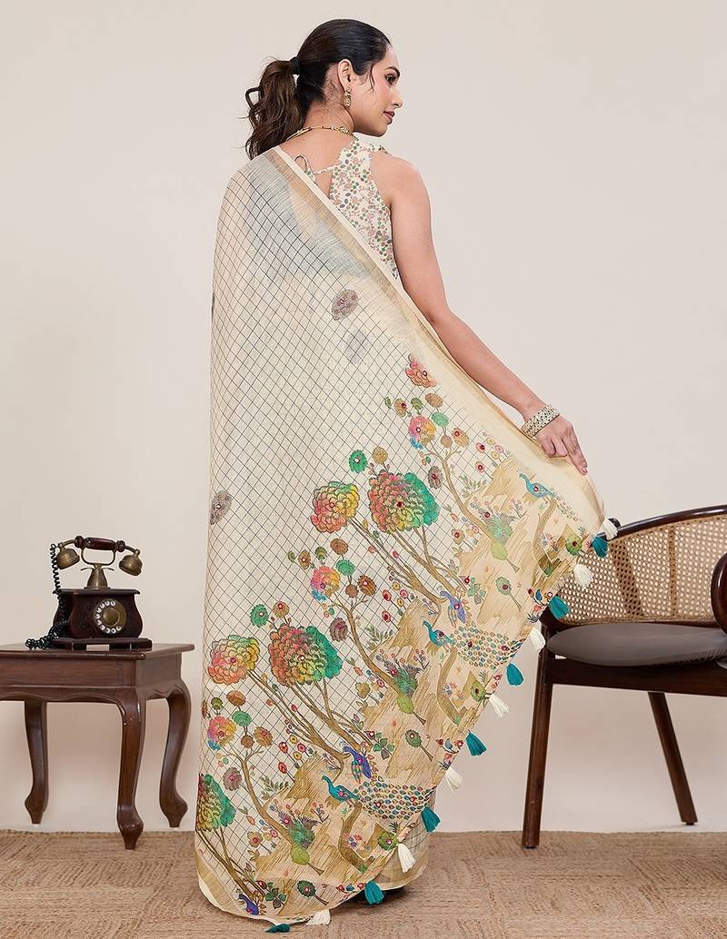 | Product Name | Cream Linen Printed Saree With Blouse | |