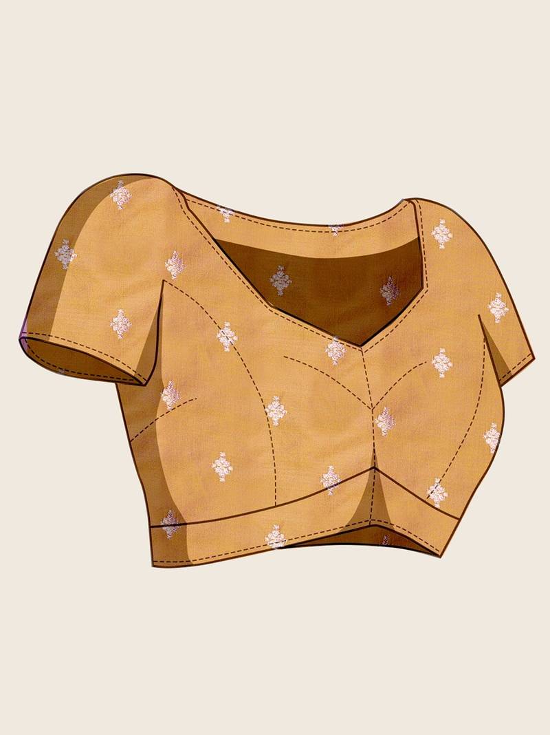 Gold silk blend printed saree with blouse