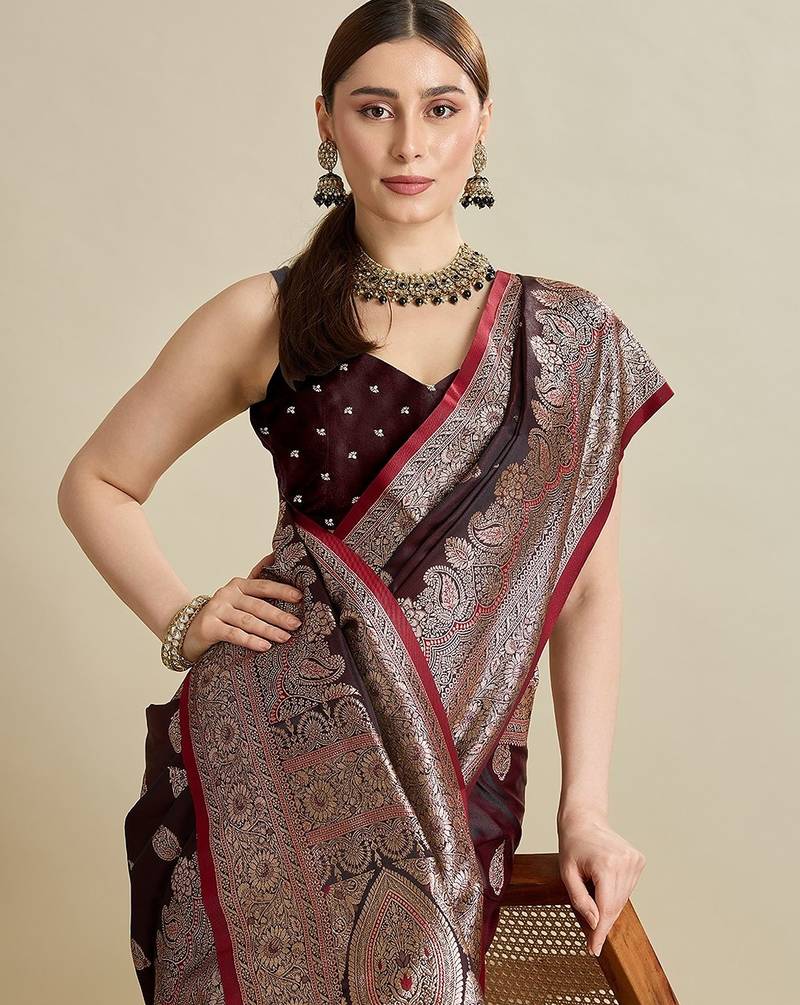 | Product Name | Maroon Satin Printed Saree With Blouse | |