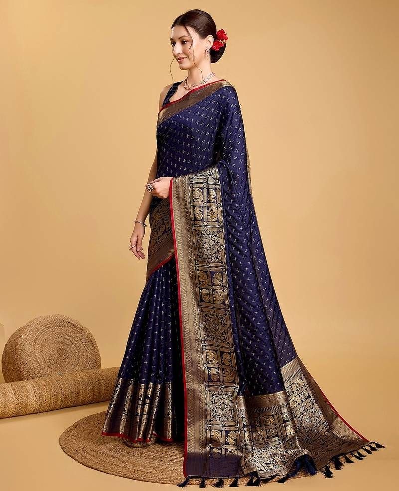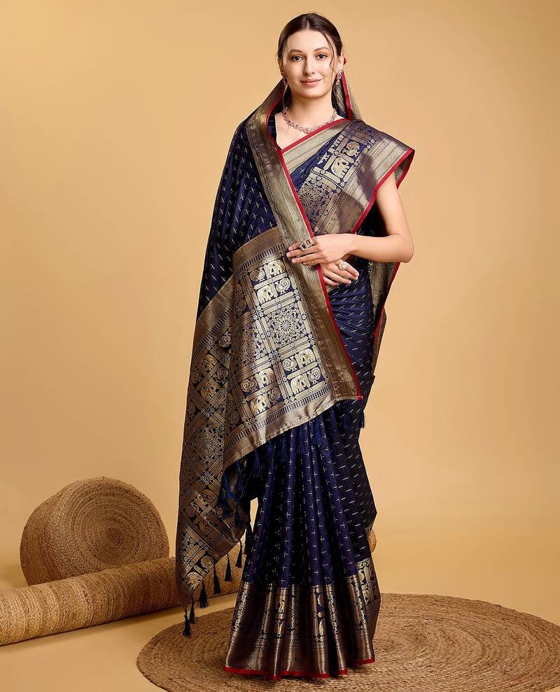 | • | Saree | : | Color- Navy Blue / Fabric- Silk Blend |