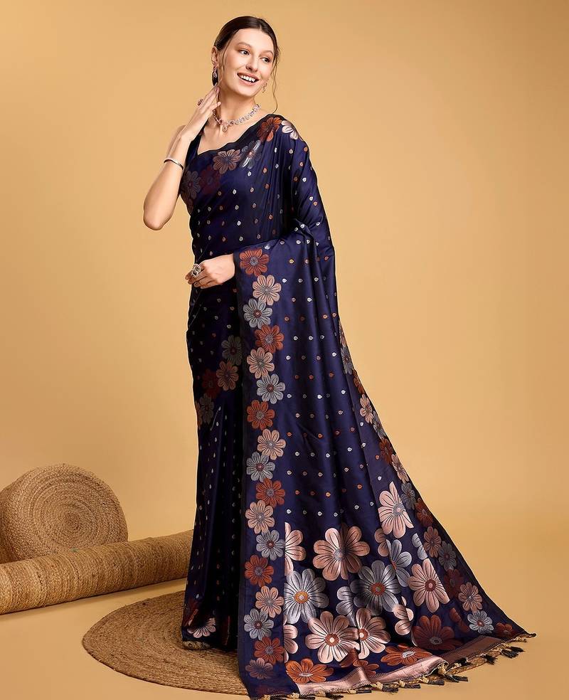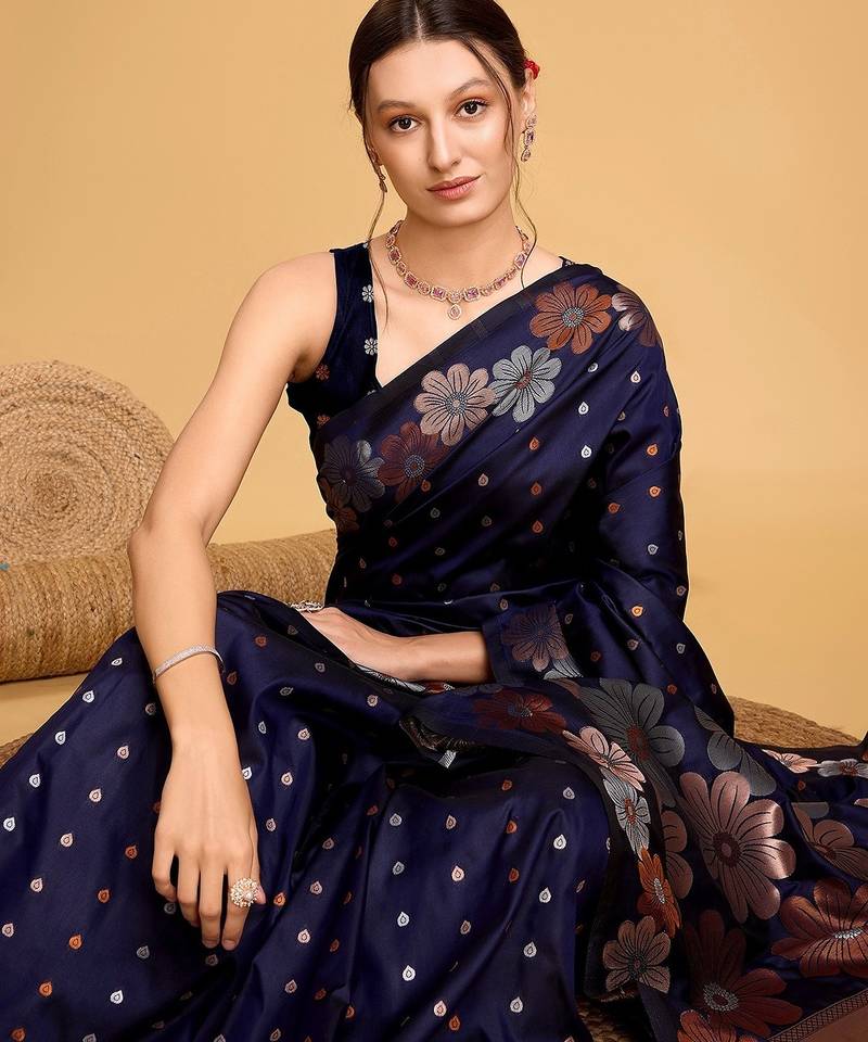 | Product Name | Navy Blue Silk Blend Printed Saree With Blouse | |