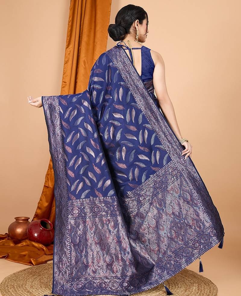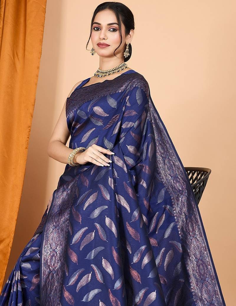 | Product Name | Navy Blue Silk Blend Printed Saree With Blouse | |